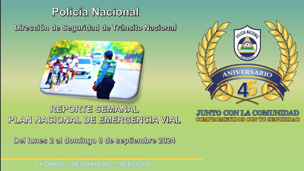Policía Nacional presenta informe de seguridad vial del 2 al 8 de septiembre de 2024
