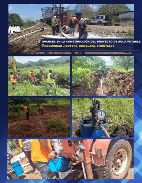 Se perforan y equipan dos Pozos y se construyen dos tanques de almacenamiento más la instalación de 14.2 kilómetros de redes, cuyo avance físico es del 65% estimándose concluir y poner en operación en el Primer Trimestre del próximo año. Este Proyecto cuenta además con el apoyo financiero del BCIE.