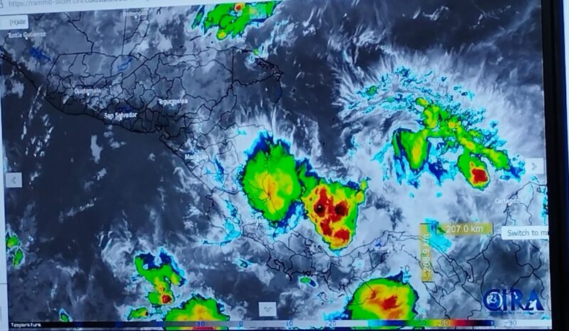 «Además, se está monitoreando un sistema de baja presión ubicado a unos 500 km al este de la costa Caribe nicaragüense. Este sistema podría desarrollarse más a lo largo de la semana, pero se espera que se desplace hacia el noreste, alejándose del territorio nacional y buscando el área de las Antillas Menores», subrayó Prado.