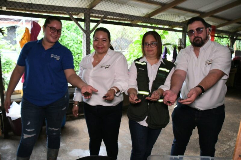 Cumpliendo con su compromiso de reintegrar el 10% de su producción anual al medio natural, este zoocriadero ha liberado este año 400 Ranitas verdes de ojos rojos, 120 Gallegos verdes y 50 Garrobos cola chata, entre hembras y machos, en la Reserva Natural Chocoyero El Brujo, contribuyendo al fortalecimiento de las poblaciones de estas especies.