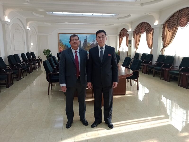 La reunión se realizó el Miércoles 4 de Diciembre del 2024, en la sede de esta importante Organización, siendo recibido nuestro Embajador por los Compañeros Kim Jo Yong, Vicepresidente de la Asociación y Ri Myong IL, funcionario de la misma.