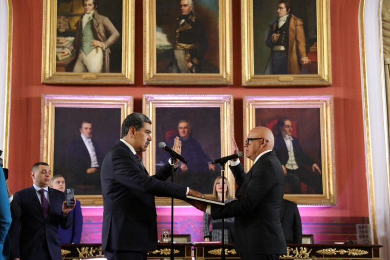 Este viernes, Nicolás Maduro Moros fue juramentado como Presidente de la República Bolivariana de Venezuela para el período 2025-2031 en una solemne ceremonia realizada en el Palacio Legislativo. El acto, presidido por Jorge Rodríguez, presidente de la Asamblea Nacional, se realizó en cumplimiento del artículo 231 de la Constitución venezolana.