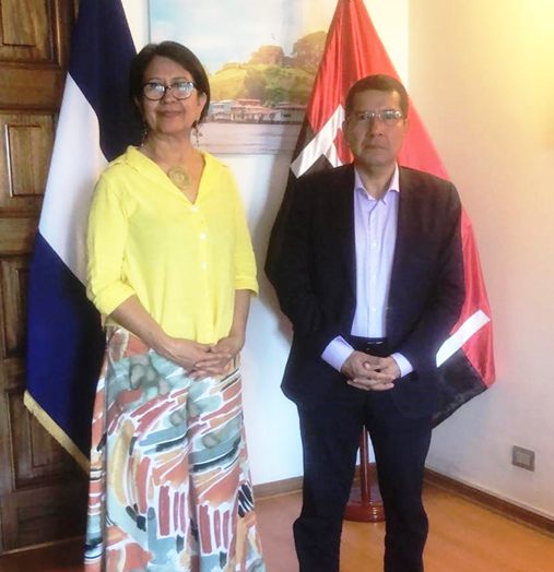 En la sede de nuestra Embajada, el Compañero Carlos Midence, Encargado de Negocios, la recibió cálidamente a la vez que le trasladó el saludo de nuestro Buen Gobierno Sandinista y Pueblo de Nicaragua, los cuales fueron bien recibidos por la Compañera.