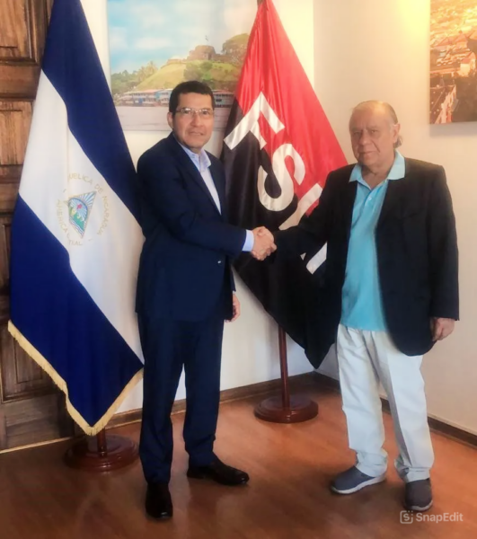 Fue recibido en la sede de nuestra Misión, por el Compañero Carlos Midence, Encargado de Negocios, quien le trasladó el cálido saludo de nuestro Buen Gobierno Sandinista y Pueblo de Nicaragua. Durante el intercambio, el Compañero Midence, le dio a conocer información sobre nuestra Nicaragua Revolucionaria: el mejoramiento de la calidad de vida de nuestras familias, combate a la pobreza, seguridad ciudadana, energía, Educación, Salud, y sobre la Paz y Estabilidad, como Bien Superior para nuestro Pueblo, que facilita condiciones óptimas para el crecimiento, Bien Común y Justicia Social.