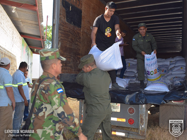 DESCARGUE DE MERIENDA ESCOLAREl Ejército de Nicaragua consecuente con el lema de que “Somos el Pueblo mismo uniformado, trabajando en su propio beneficio”, el 17 de enero de 2025, a través del Primer Comando Militar Regional, en coordinación con el Ministerio de Educación (MINED) del municipio de Estelí, departamento de Estelí, realizó el descargue de 2,712.5 quintales de alimentos (arroz, frijoles, cereal y maíz) y 2,634 galones de aceite, que serán distribuidos en 156 centros educativos urbanos beneficiando a 15,501 estudiantes.