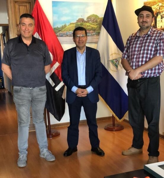 La Embajada de Nicaragua en Chile, recibió la cordial visita de los Compañeros Gustavo Sotomayor, Dirigente de la Federación Nacional Popular (FENAPO) y Jaime Ossa Zaror, de la misma organización y destacado Dirigente Comunitario. Ambos nos visitaron desde la Provincia de Concepción, de la Región del Biobío. La visita tenía el propósito de intercambiar información y estrechar lazos de colaboración internacionalista con nuestra Nicaragua.