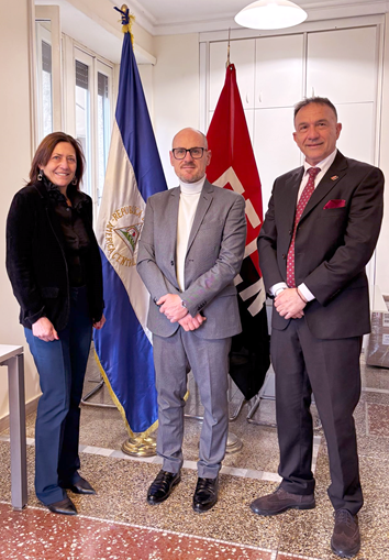 En la sede de nuestra Embajada en Italia, recibimos al empresario Fabio Seddio, titular de la marca italiana de café Seddio, quien expresó su interés en la compra de café Arábica y Robusta de Nicaragua para su procesamiento y distribución en Italia. Durante la reunión, destacó la calidad excepcional del café nicaragüense, reconocido internacionalmente por su aroma, sabor y las prácticas sostenibles que garantizan su producción.