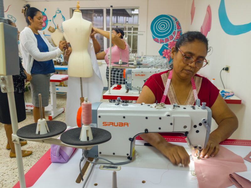 Karen Juárez, maestra del curso de costura, explicó que la formación incluye el uso de técnicas como el trapeado, el trabajo con percales y el bordado a mano, herramientas esenciales en la alta costura que permiten a los estudiantes perfeccionar sus destrezas. Según Juárez, la práctica de estas técnicas no solo potencia la calidad de las prendas, sino que también favorece la innovación y el diseño creativo, elementos clave en el mundo de la moda.