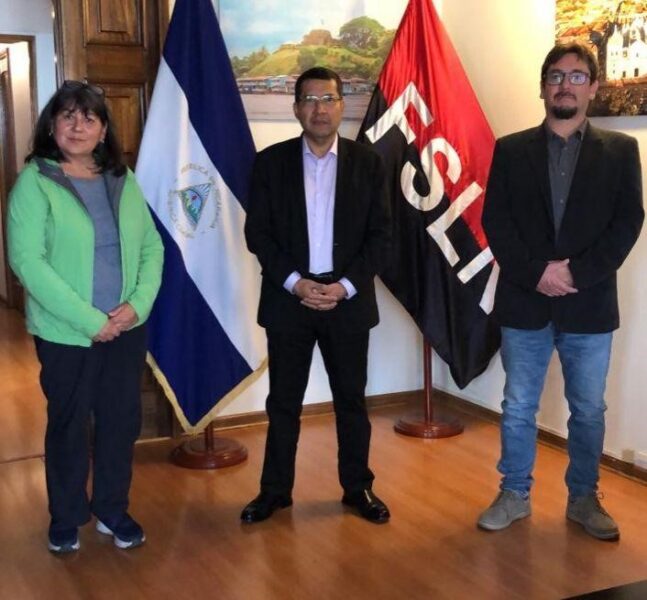 La sede diplomática nicaragüense en Santiago fue visitada por la activista Macarena Vinnett y el abogado en derechos humanos Víctor Pino, en un encuentro de diálogo solidario y cooperación.