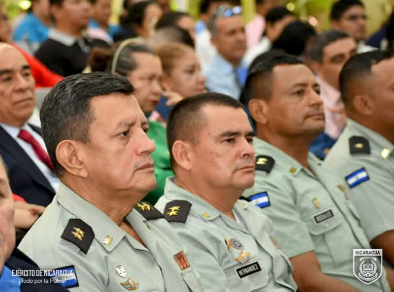En cumplimiento a orden del Comandante en Jefe de las Fuerzas Militares del Ejército de Nicaragua, General de Ejército Julio César Avilés Castillo, de avanzar en la mejora continua del proceso educativo en la Universidad de Defensa de Nicaragua “4 de mayo” (UDENIC), el 8 de mayo de 2025, en el Aula Magna de la Universidad Nacional “Casimiro Sotelo Montenegro”, participó en encuentro con directivos del Sistema Educativo Nacional “Seguimos el legado de Sandino, forjando la unidad y el futuro de nuestra nación desde la educación”, en el marco de la segunda fase de implementación de la Estrategia Nacional de Educación “Bendiciones y Victorias”, organizado por el Consejo Nacional de Universidades.