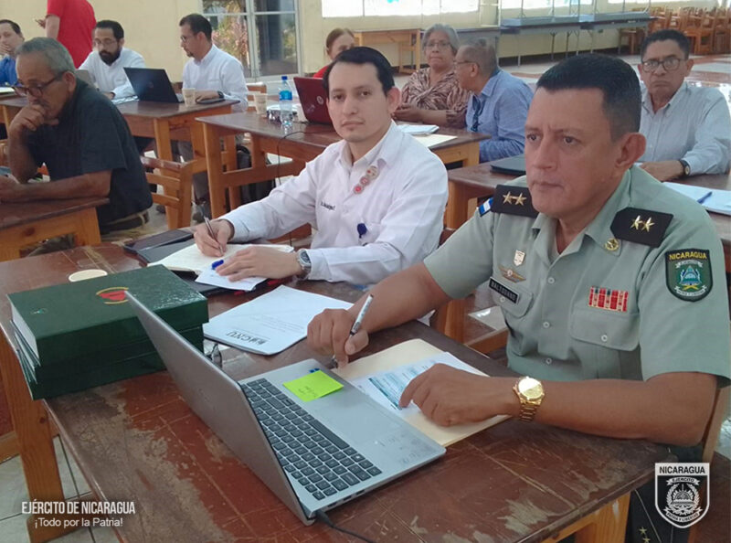 En cumplimiento a orden del Comandante en Jefe de las Fuerzas Militares del Ejército de Nicaragua, General de Ejército Julio César Avilés Castillo, para avanzar en la mejora continua del proceso educativo en la Universidad de Defensa de Nicaragua “4 de mayo” (UDENIC), el 9 de mayo de 2025, en el auditorio de la Biblioteca Central de la Universidad Nacional de Ingeniería (UNI), participó en el “Taller para la actualización curricular”, en el marco de la segunda fase de implementación de la Estrategia Nacional de Educación “Bendiciones y Victorias”, organizado por el Consejo Nacional de Universidades.