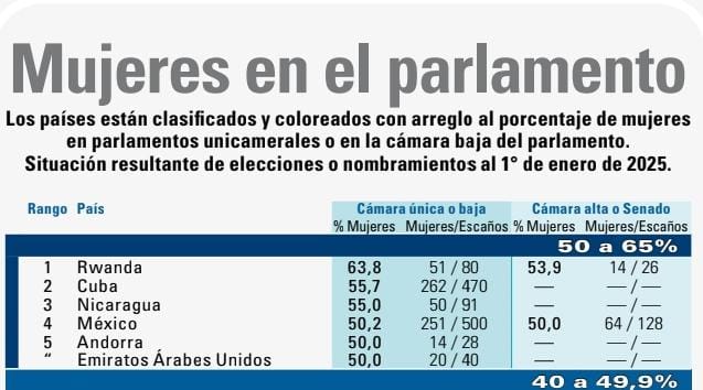 En un nuevo reconocimiento a nivel mundial, Nicaragua ha sido destacada como la nación con mayor representación femenina en ministerios y la tercera con más mujeres en parlamentos, según el Mapa Mujeres en la Política 2025.