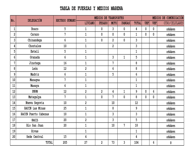 41 puestos de mandos: 01 en el ámbito central, 18 en los departamentos y Regiones Autónomas, 07 en los municipios de Reserva de Biosfera de BOSAWAS (Waslala, Siuna, Bonanza, Waspam, El Cúa, San José de Bocay, Wiwilí), 04 en municipios de la Reserva de Biosfera Rio San Juan, 01 en Chacocente, 01 en La Flor, 01 Volcán Masaya, 01 en Ometepe, 01 Mateare, 01 Cerro Negro, 01 Parque Zoológico Nacional y 01 Corn Islands.