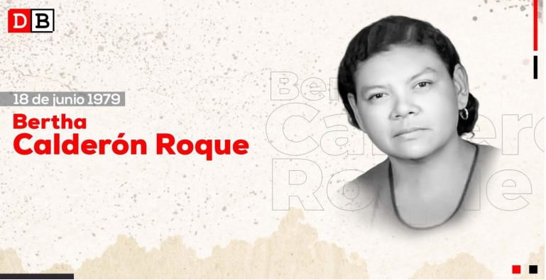 La compañera Bertha Calderón Roque, cayó en el barrio Altagracia, en Managua. “Atendía heridos y la guardia llegó y la asesinó en una casa de seguridad, frente al combatiente herido que ella estaba atendiendo. Cayó, dando su vida con amor y por amor y por la vida, la compañera Bertha Calderón Roque”.