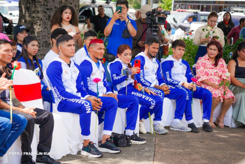 El acto también incluyó un reconocimiento especial a la delegación nicaragüense de artes marciales mixtas, que recientemente alcanzó un logro histórico en el campeonato mundial celebrado en Brasil.