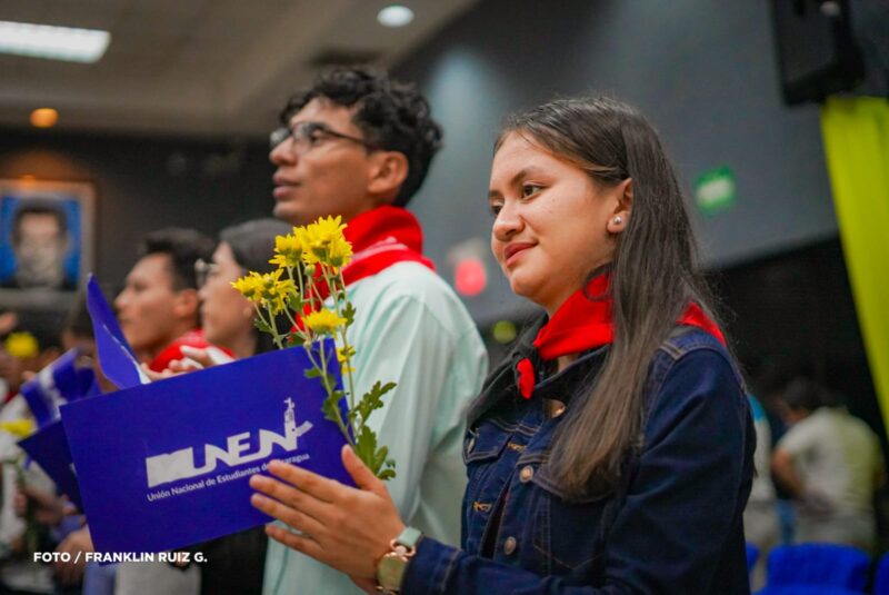 El auditorio Fernando Gordillo de la UNAN-Managua fue el escenario principal del encuentro nacional de líderes estudiantiles en conmemoración del 23 de julio, fecha en la que se honra la memoria de los héroes y mártires estudiantiles caídos en la ciudad de León en 1959. Alrededor de 150 dirigentes de distintas universidades del país se congregaron para rendir homenaje y reafirmar su compromiso con el legado histórico de lucha del movimiento estudiantil nicaragüense.