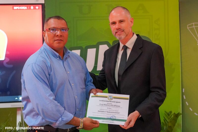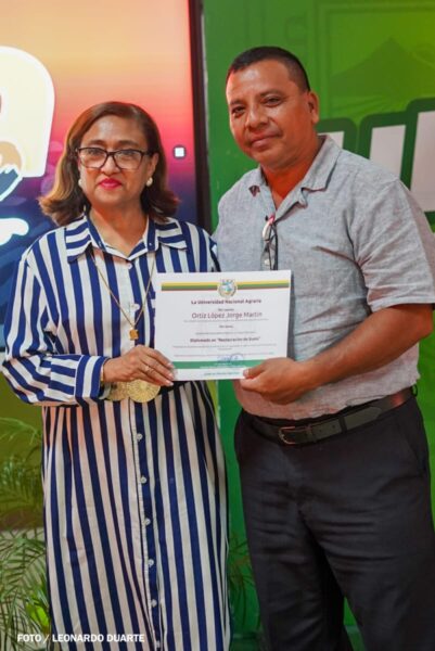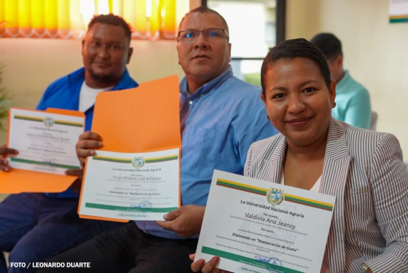Un grupo de 24 maestras y maestros de los Centros Tecnológicos Agropecuarios del país culminó con éxito el Diplomado en Restauración de Suelo, una iniciativa impulsada por el Tecnológico Nacional (INATEC) en coordinación con la Universidad Nacional Agraria (UNA), como parte de la Estrategia Nacional de Educación “Bendiciones y Victorias 2024-2026”.