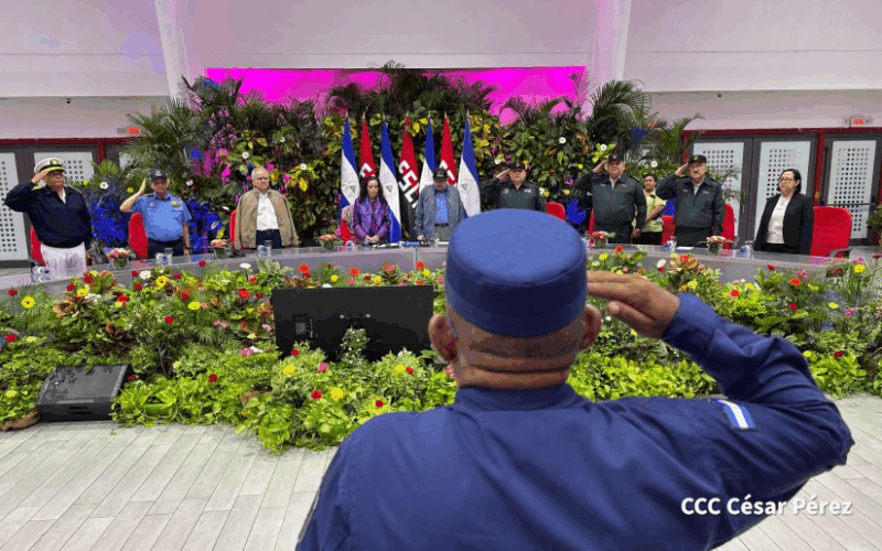 Acompañados por el Comandante en Jefe del Ejército de Nicaragua, General de Ejército Julio César Avilés Castillo, los Copresidentes rindieron homenaje a la valentía, disciplina y compromiso patriótico de hombres y mujeres que integran esta fuerza estratégica para la soberanía marítima nacional. La ceremonia contó con la destacada participación de los altos mandos del Ejército, representantes del Estado nicaragüense y delegaciones militares de países hermanos, en un evento que reafirma el respaldo del pueblo y Gobierno a su Ejército defensor de la paz.