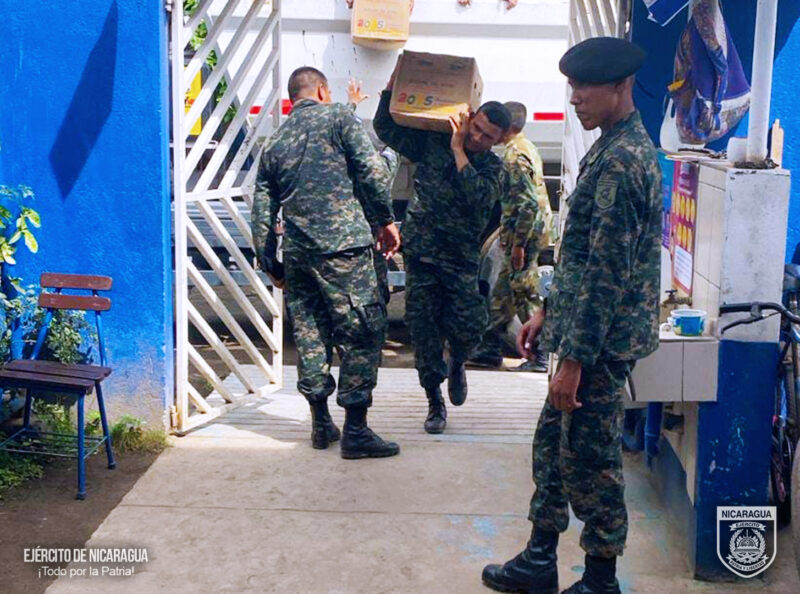 La Brigada de Infantería Mecanizada “General Augusto C. Sandino” trasladó y descargó más de 256 quintales de alimentos y 190 galones de aceite en distintos colegios de Ciudad Sandino, beneficiando a 1,623 estudiantes, en coordinación con el Ministerio de Educación.