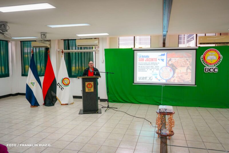 La Universidad de Ciencias Comerciales (UCC) fue sede de la conferencia “Nuestra historia de lucha por la soberanía nacional: Todos San Jacinto”, impartida por el diputado Filiberto Rodríguez, con la presencia del rector Eddy Baltodano, el vicerrector, docentes y estudiantes.