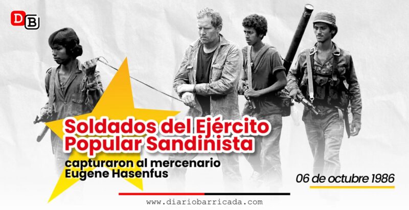 Posteriormente, un día como hoy, un seis de octubre de 1986, hace 39 años, Eugene Hasenfus, el único sobreviviente al precipitarse el avión de carga norteamericano, alcanzado por el misil antiaéreo de las fuerzas armadas sandinistas, fue encontrado y capturado en una choza abandonada al día siguiente de ser derribada la aeronave, por las tropas del Ejército Popular Sandinista.