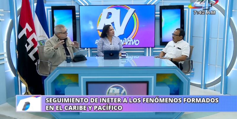 El director de Meteorología de INETER, Marcio Baca, brindó detalles actualizados sobre la situación climática en el país, en especial el seguimiento a dos fenómenos atmosféricos, uno en el Caribe y otro en el Pacífico, que aunque no impactan directamente al territorio nicaragüense, sí generan efectos indirectos como lluvias, incremento en los vientos y oleaje en la región del Caribe Norte.