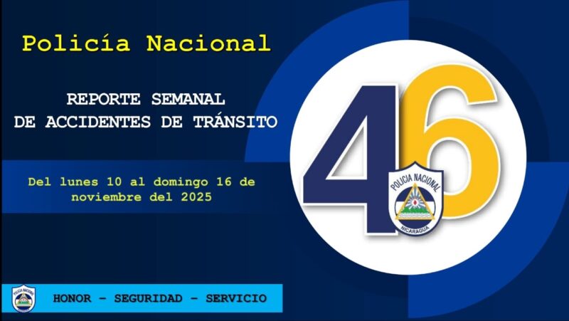 La Policía Nacional presentó su informe semanal de accidentes de tránsito correspondiente al período del lunes 10 al domingo 16 de noviembre de 2025, destacando una reducción significativa en fallecidos y lesionados en comparación con el año anterior.