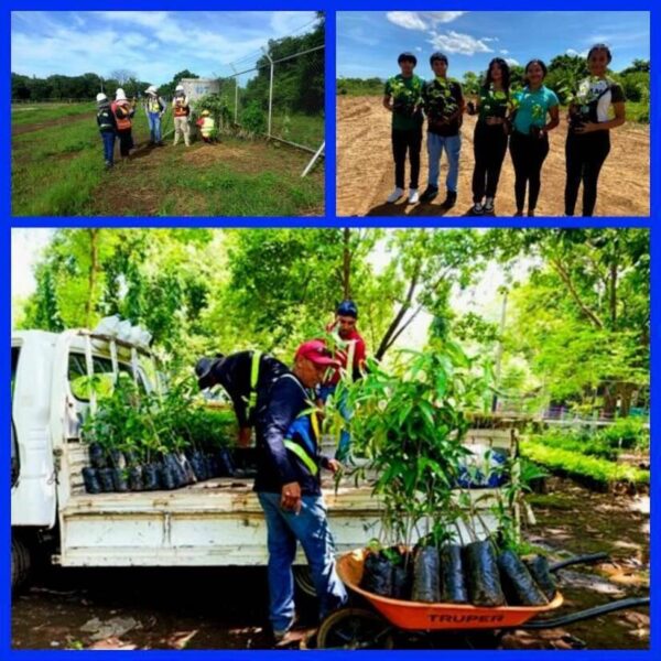 Como parte del compromiso ambiental de Nuestro Buen Gobierno, ENACAL desarrolla entre noviembre y diciembre una jornada de reforestación en zonas de recarga hídrica y áreas vinculadas a proyectos de agua y saneamiento en León y El Viejo, fortaleciendo la protección de las fuentes de agua y el equilibrio ambiental. En esta iniciativa se han plantado más de 5,600 árboles frutales y ornamentales, en coordinación con Alcaldías, empresas constructoras y estudiantes del Movimiento Ambientalista Guardabarranco.