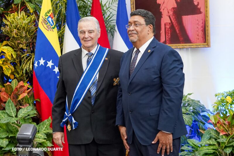 En ese sentido, destacó que el reconocimiento se otorga al embajador venezolano por sus valiosos aportes al fortalecimiento de los vínculos de amistad, solidaridad y cooperación entre Nicaragua y Venezuela.