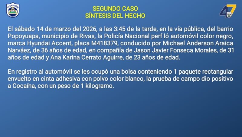 El segundo operativo se registró el sábado 14 de marzo de 2026 a las 3:45 de la tarde en la vía pública del barrio Popoyuapa, municipio de Rivas.