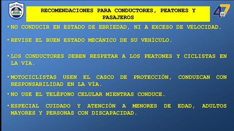 La Policía Nacional reiteró el llamado a conductores, peatones y pasajeros a: