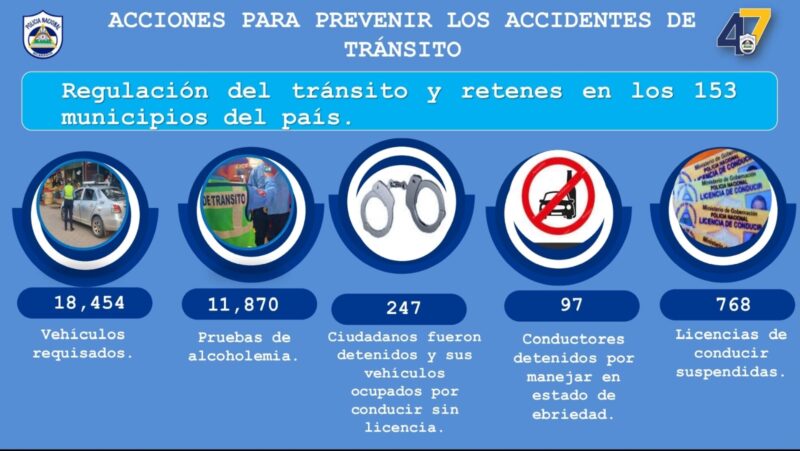 La Policía Nacional fortaleció la regulación del tránsito mediante retenes en los 153 municipios del país. Como resultado de estos operativos: