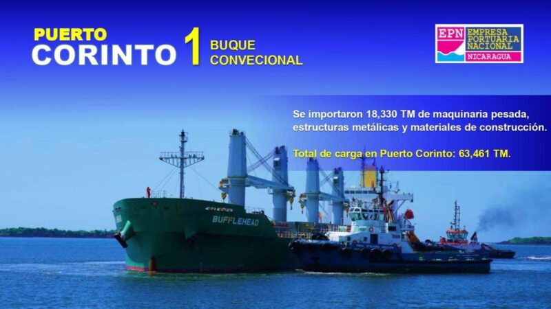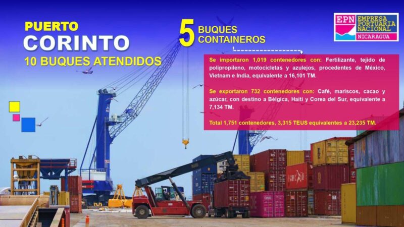En Puerto Sandino, se recibió un buque procedente de China con 11,473 toneladas métricas de cemento. En total, los puertos comerciales del país movilizaron 75,259 toneladas métricas durante la semana.