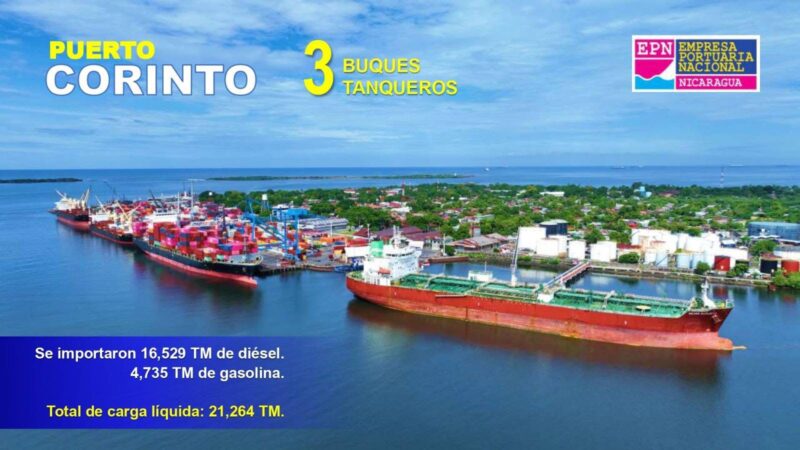 En Puerto Corinto se concentró la mayor actividad comercial con la llegada de 10 buques internacionales, de un total de 12 atendidos a nivel nacional. Entre estos, cinco embarcaciones portacontenedores movilizaron 1,019 unidades con productos como fertilizantes, tejidos de polipropileno, motocicletas y azulejos, procedentes de México, Vietnam e India, para un peso de 16,101 toneladas métricas. En exportaciones, se enviaron 732 contenedores con café, mariscos, cacao y azúcar hacia Bélgica, Haití y Corea del Sur, sumando 7,134 toneladas métricas. A esto se sumó la atención de tres buques tanqueros que descargaron 21,264 toneladas métricas de combustibles, entre diésel y gasolina.