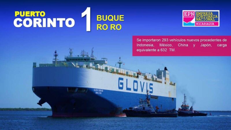 Asimismo, un buque tipo rorro ingresó 293 vehículos nuevos provenientes de Asia y América, mientras que un buque convencional descargó 18,330 toneladas métricas en maquinaria pesada y materiales de construcción. En conjunto, Puerto Corinto registró un movimiento superior a las 63 mil toneladas métricas.