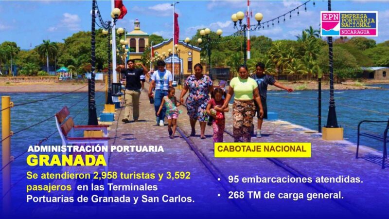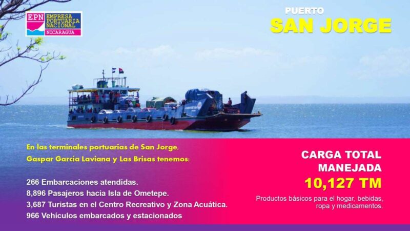 En cuanto a la actividad turística, los puertos del país reportaron una alta afluencia de visitantes. Desde San Jorge, se atendieron 266 embarcaciones que trasladaron a 8,896 pasajeros hacia la isla de Ometepe, además de movilizar carga y vehículos. En Granada y San Carlos se contabilizaron más de 6,500 visitantes entre turistas y pasajeros.