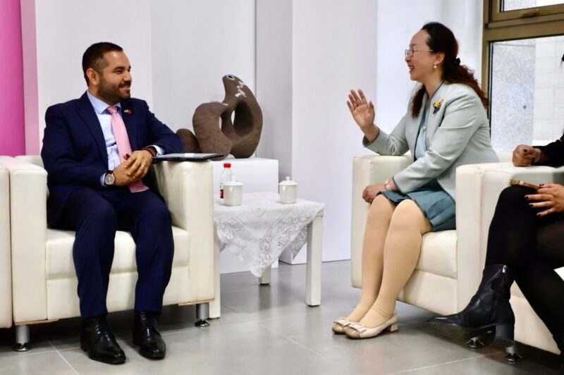 La Misión Diplomática sostuvo una reunión bilateral con la Compañera Huang Keyin, Secretaria del Partido Comunista de China de BIFT y otras autoridades del centro de educación superior.
