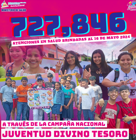 En seguimiento a las actividades de la Campaña Nacional “Juventud Divino Tesoro”, al 16 de mayo 2024, hemos brindado 727,846 atenciones en salud, realizando las siguientes acciones: