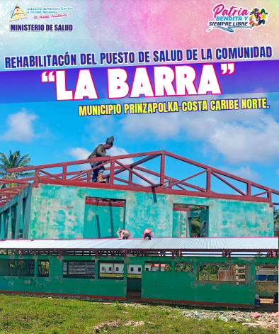 Actualmente, se realizan obras de Rehabilitación y Equipamiento del Puesto de Salud de la Comunidad “La Barra”, Municipio de Prinzapolka-Costa Caribe Norte; lo que nos permitirá atender en mejores condiciones a 1,700 protagonistas quienes pertenecen al Pueblo Miskitus y habitan en tres Comunidades de esta localidad.