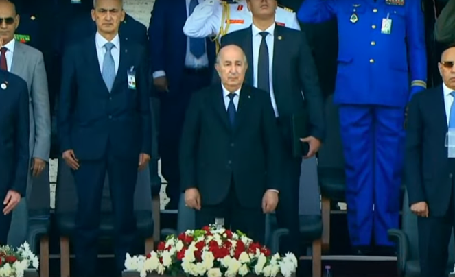 El Señor Presidente Abdelmadjid Tebboune en su intervención felicitó la dignidad del Pueblo Argelino, el honor de los Héroes, Mártires y Combatientes, así mismo hizo hincapié en el principio del Ejército Nacional de Defensa del Pueblo y que sus armas están dirigidas exclusivamente a defender a Argelia y proteger su Soberanía nacional.