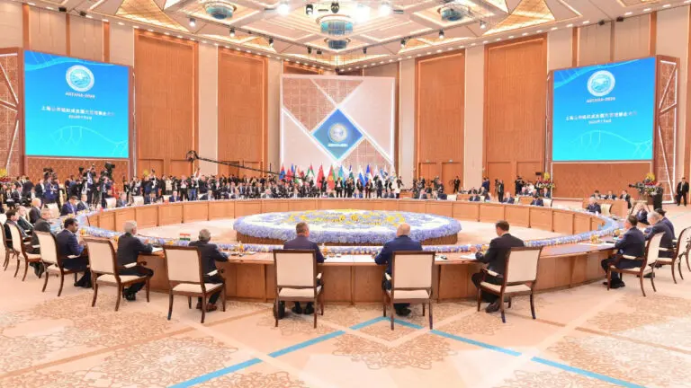En la apertura de la sesión plenaria de la cumbre de la OCS, en la capital de Kazajistán, el presidente ruso declaró que en su declaración final, los países miembros del bloque subrayarán su «compromiso a favor de la formación de un orden mundial multipolar equitativo, basado en el papel central de la Organización de las Naciones Unidas, el derecho internacional y la aspiración de los Estados soberanos a una asociación mutuamente beneficiosa».