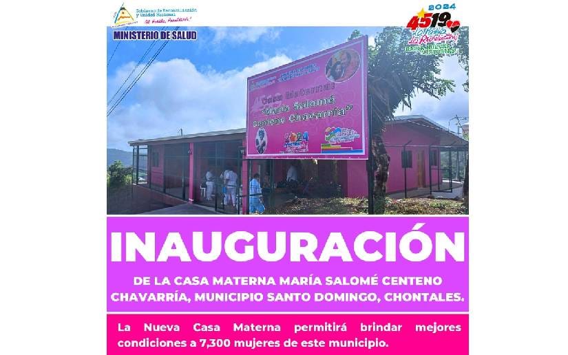 Hoy Viernes 19 de Enero, inauguramos la Casa Materna “María Salomé Centeno Chavarría”, en el Municipio de Santo Domingo, Chontales, para brindar mejores condiciones a 7,300 Mujeres de este Municipio. (Inversión 4.3 millones de córdobas).